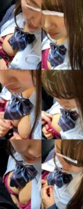 ➡ [乗車記録50/吐息音声有]青チェ女子校生...紫紐パンのマシュマロ爆乳ちゃん