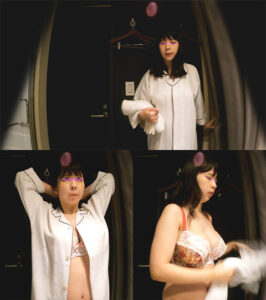 脱衣所で衣服を脱ぐと超絶美乳を惜しげもなく披露してくれました