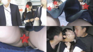 02分25秒~04分10秒:★車内でスカートの上から徐々に中に手を入れパンツの上からお尻や膣口を触るS氏と前側から被写体のパンツや太ももを弄るN氏と新人痴漢T氏(「やめてください」と抵抗する被写体)★