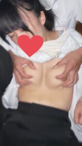 制服を脱がすと美しい爆乳が現れます。