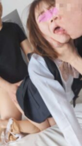 そのあとは制服のベストやブラウスをむしられてピンク乳首を舐めまわされたりやぶれたパンストの隙間に電マを押し当てられたりバイブを挿れられたりしてます。