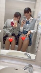 トイレ内でお互いパンチラ撮影