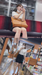 歩くのが早く、なかなか出没しなかったので見つけるのに苦労しました。目星は付けていたのですがレアキャラです。この日は駅近のコンビニで運良く見つけることができました。Suicaのチャージは十分にしてたので、どこまでも追跡する所存。〇の内線に乗っていきました。電車内で自分の顔を確認。このあとデートでもするのでしょうか。そこまで遠くない駅で下車していきました。本屋→マックとハシゴ。歩いている時の尻肉、そして美脚。揺れる乳房でもう興奮度はマックスです。フルーリーにイイ感じの投入できました。